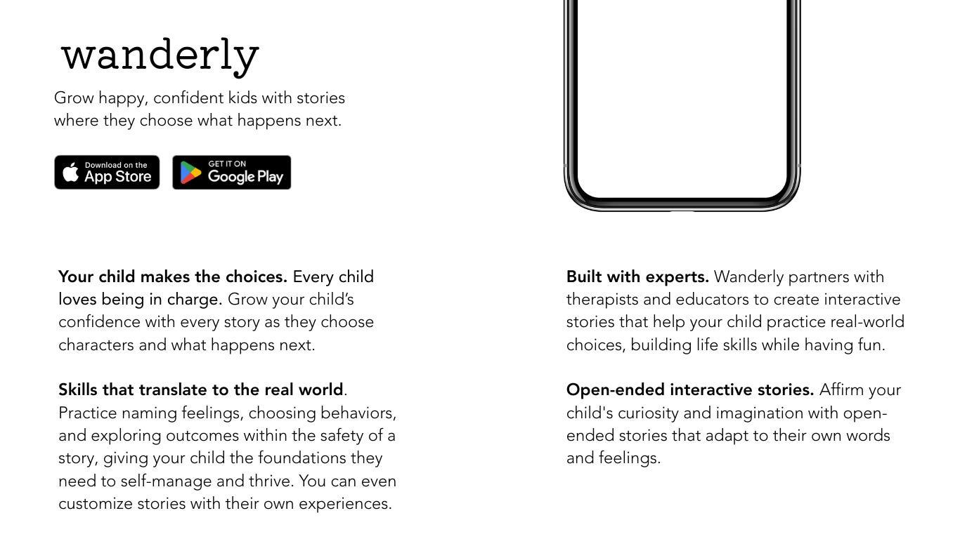 I initially got trapped in trying to describe Wanderly in terms of features, but good marketing shows you how you’re going to feel after using a product… once your problem is solved. Rather than focusing on features and the educational process (e.g., when a child is trying to name their dysregulated feeling), I tried to leverage the insights from the parenting needs section of my first survey. I focused on the goal of a child demonstrating self-regulation and confidence, and what the parent would feel like if Wanderly reduced the strain of “big feelings” moments and allowed them to connect more effectively with their child. But more than anything, I experimented a LOT, and each experiment refined my own understanding of Wanderly.